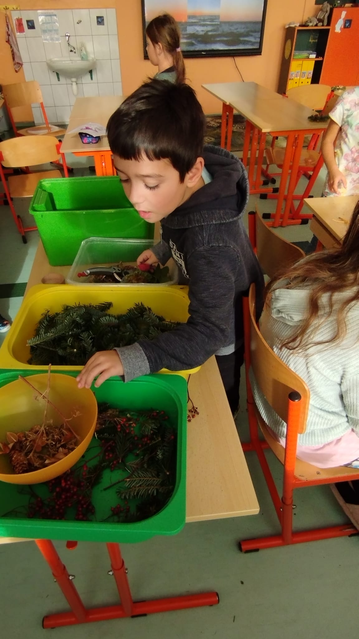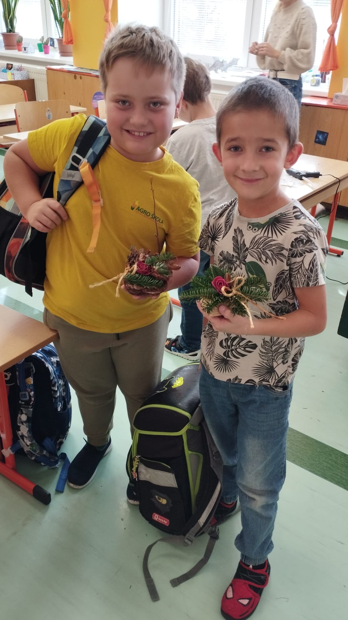 Páteční dopoledne jsme s dětmi tvořili podzimní dekorace z větviček a přírodních materiálů k blížící se Památce zesnulých. Povídali jsme si o tom, proč si tento svátek připomínáme, a jak si můžeme uchovat vzpomínky na ty, kteří už s námi nejsou. Společně jsme pak navštívili místní hřbitov, kam jsme své výtvory odnesli.