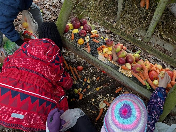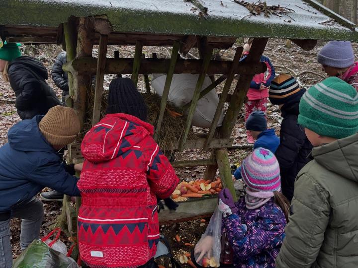 Dnes jsme se žáky potěšili lesní zvířátka u krmelce.