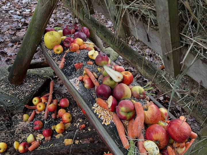 Přinesli jsme jim spoustu dobrot – jablíčka, mrkve, kaštany, kukuřici, seno i semínka.
