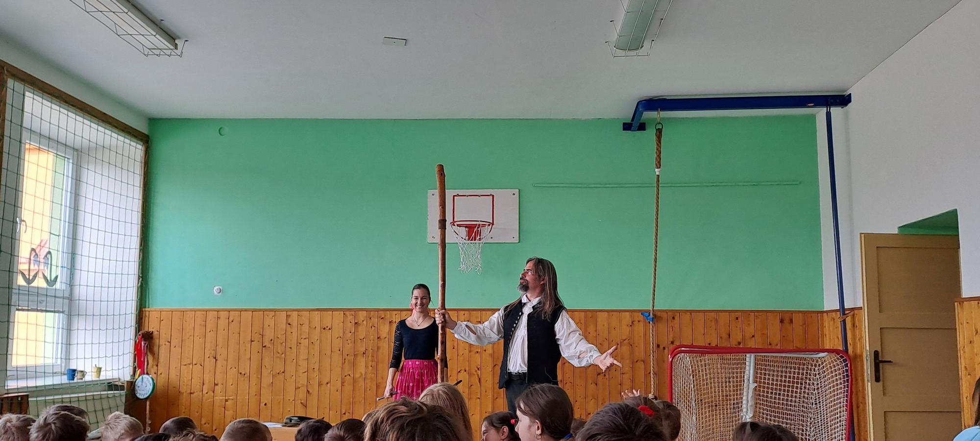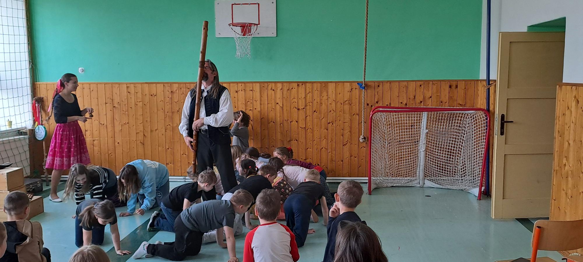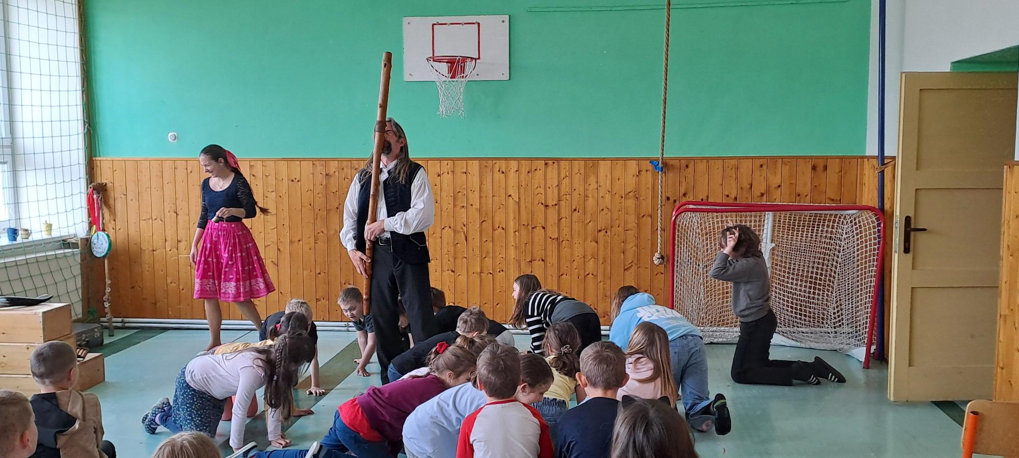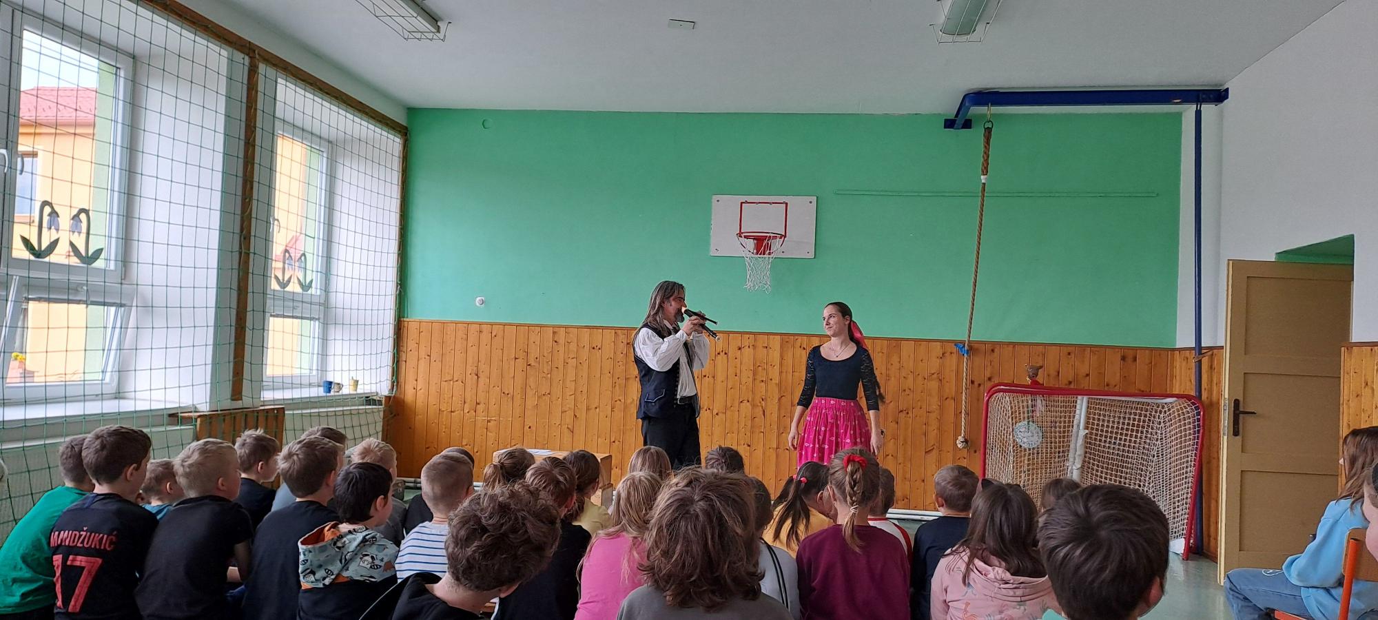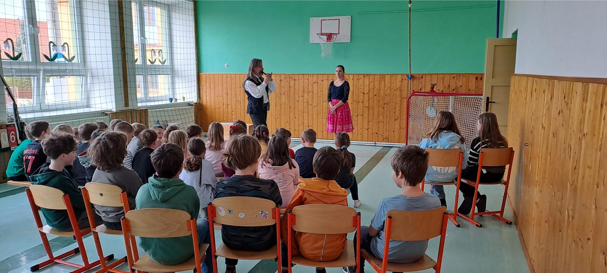 V pondělí 14. 4. k nám do školy zavítali dudáci Tryhuci s hudebním programem S píšťalkou kolem světa. Představili nám několik typů píšťal a zazpívali jsme si spolu známé písně.