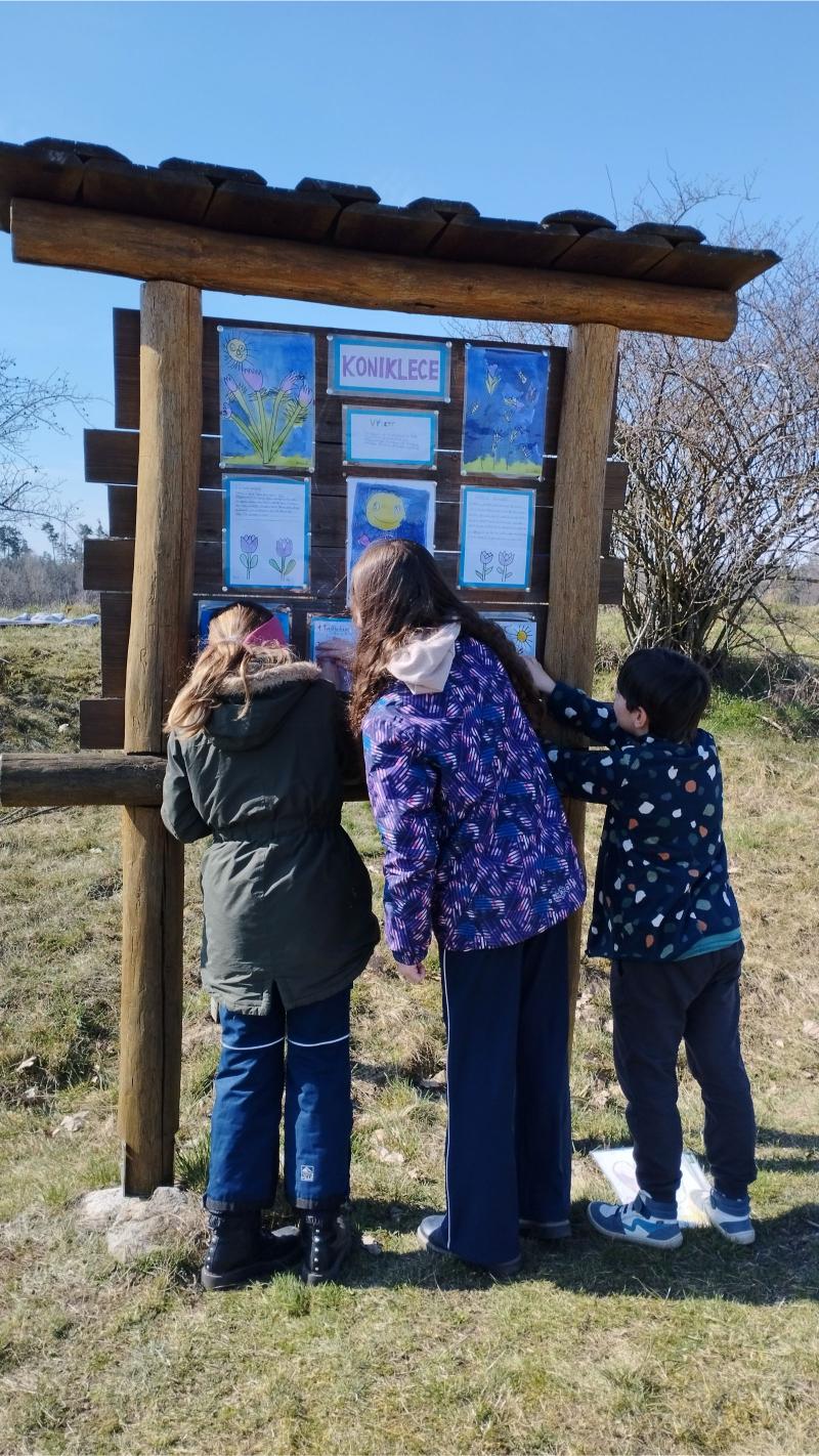Každoročně pečujeme o nástěnku v lokalitě, kde rostou vzácné koniklece, a ani letos tomu nebylo jinak. Naši žáci se s nadšením pustili do tvoření – malovali krásné obrázky a psali krátké texty o těchto jarních květinách. Jejich práce nyní zdobí nástěnku a zpříjemňují návštěvu všem, kdo se sem přijdou podívat.Věříme, že nejen potěší, ale také připomenou, jak důležité je koniklece chránit. Dětem patří velká pochvala za jejich kreativitu i snahu.