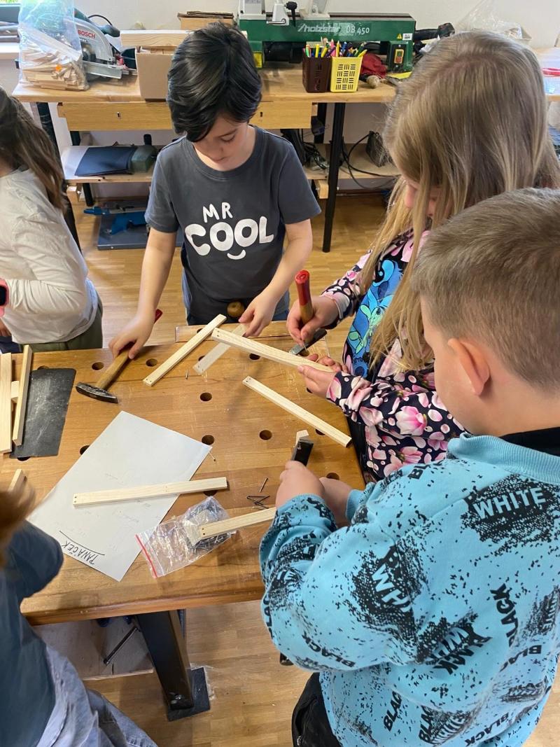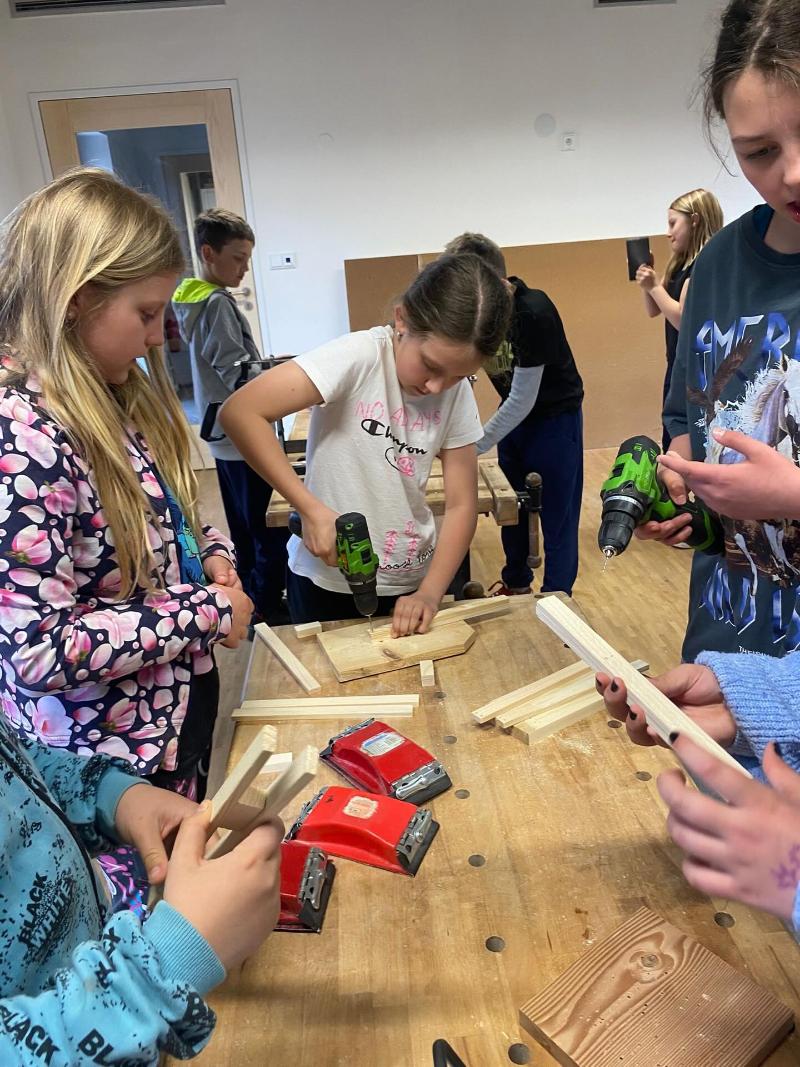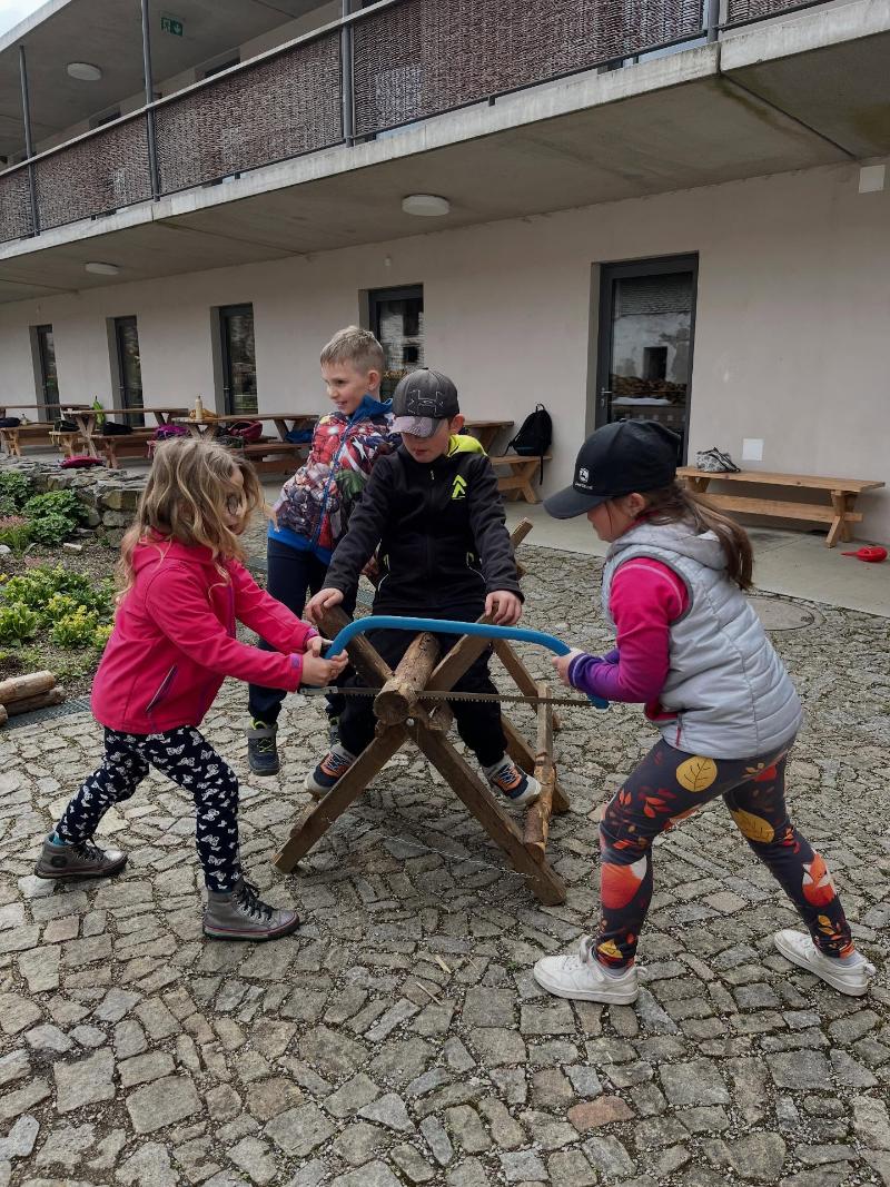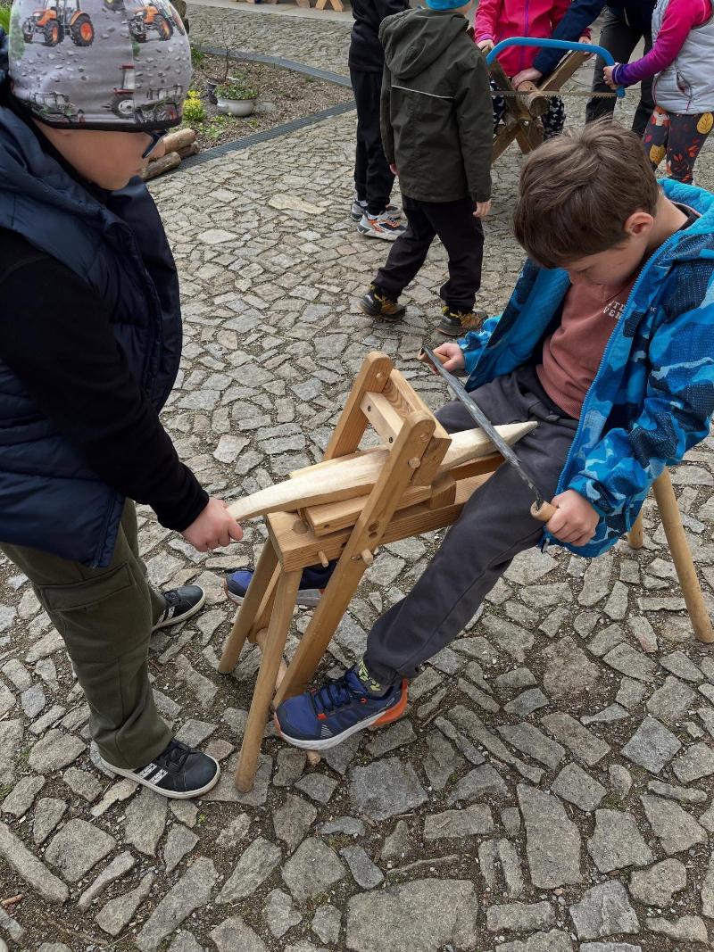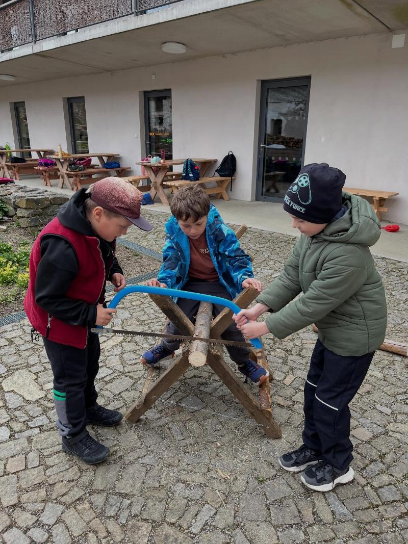 V pondělí jsme vyrazili do balinského ekocentra. Program, kterého jsme se zúčastnili, byl věnovaný dřevu. Dozvěděli jsme se spoustu informací a zajímavostí o dřevinách, které rostou kolem nás, ale hlavně, v perfektně vybavené truhlářské dílně jsme si mohli vyzkoušet, jak nám půjde se dřevem pracovat. Prvňáčci s druháčky si vyrobili každý svou kostku a přívěsek, starší děti pak dřevěného akrobata. Štípání dřeva opravdovou sekerou a řezání polen dvoumužnou pilou na závěr bylo pro mnohé velkým zážitkem.