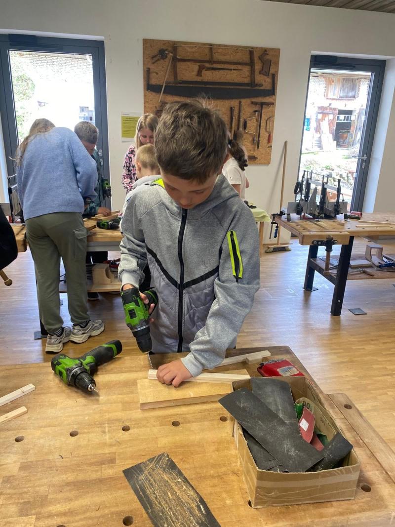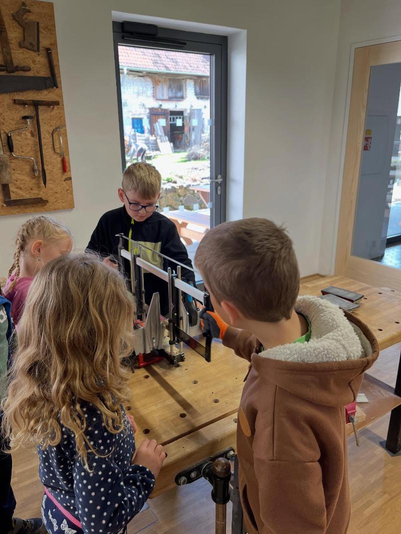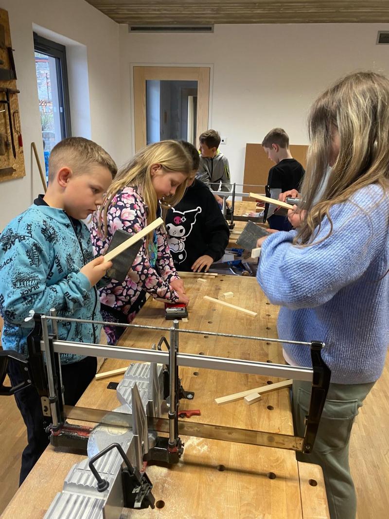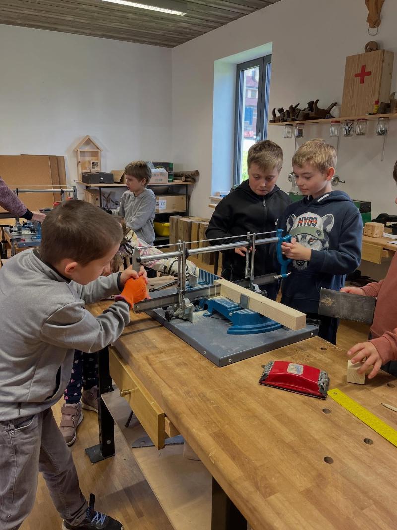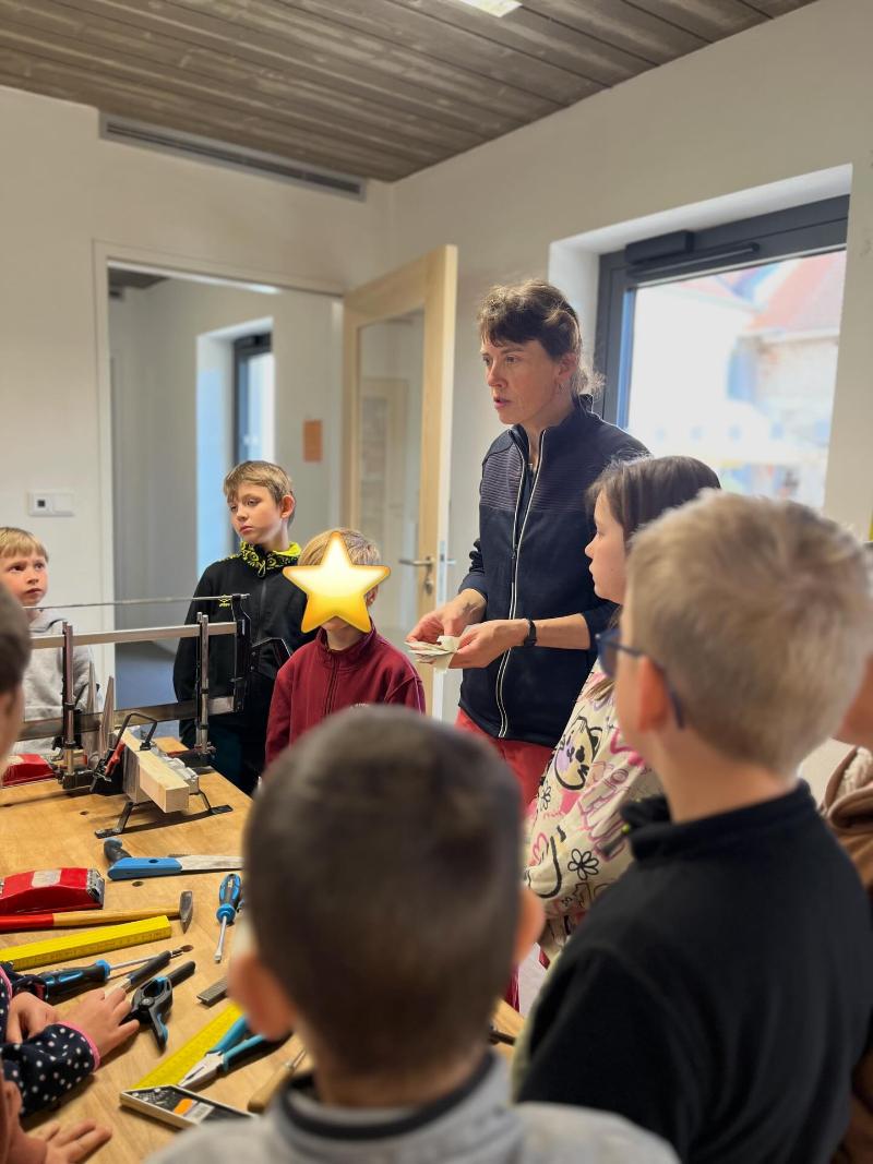V pondělí jsme vyrazili do balinského ekocentra. Program, kterého jsme se zúčastnili, byl věnovaný dřevu. Dozvěděli jsme se spoustu informací a zajímavostí o dřevinách, které rostou kolem nás, ale hlavně, v perfektně vybavené truhlářské dílně jsme si mohli vyzkoušet, jak nám půjde se dřevem pracovat. Prvňáčci s druháčky si vyrobili každý svou kostku a přívěsek, starší děti pak dřevěného akrobata. Štípání dřeva opravdovou sekerou a řezání polen dvoumužnou pilou na závěr bylo pro mnohé velkým zážitkem.